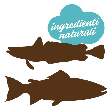 Nasello: carni e derivati*, pesci e sottoprodotti dei pesci* (4% nasello), sottoprodotti di origine vegetale* (0,4% inulina da cicoria), sostanze minerali. Additivi/kg: Additivi nutrizionali: vit. D3 200 U.I., vit. E 100 U.I., biotina 100 μg, taurina 100 mg, Zn (solfato di zinco monoidrato) 20 mg, Mn (solfato manganoso monoidrato) 3 mg. Salmone: carni e derivati*, pesci e sottoprodotti dei pesci* (4% salmone), sottoprodotti di origine vegetale* (0,4% inulina da cicoria), sostanze minerali. Additivi/kg: Additivi nutrizionali: vit. E 100 U.I., biotina 100 μg, taurina 100 mg, Zn (solfato di zinco monoidrato) 20 mg, Mn (solfato manganoso monoidrato) 3 mg
