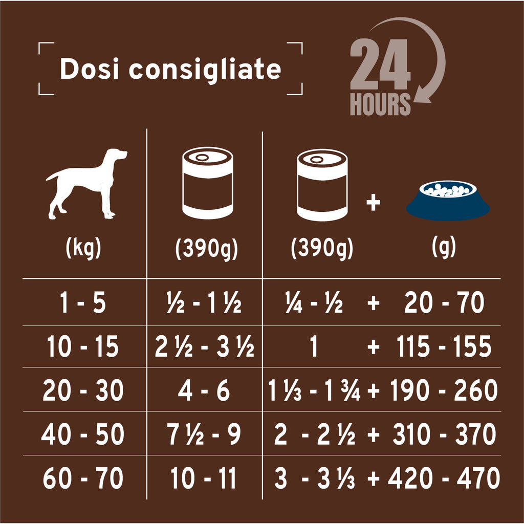Formula con pochi ingredienti selezionati, ideale per cani con sensibilità alimentari o patologie intestinali.